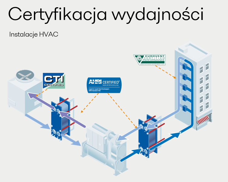 Program AHRI certyfikacji wymienników ciepła typu ciecz-ciecz (LLHE) umożliwia niezależną weryfikację właściwości termicznych - zapewnia, że płytowy wymiennik ciepła będzie zgodny z danymi technicznymi podanymi przez producenta oraz zostanie zaprojektowany z zachowaniem rozsądnej tolerancji.